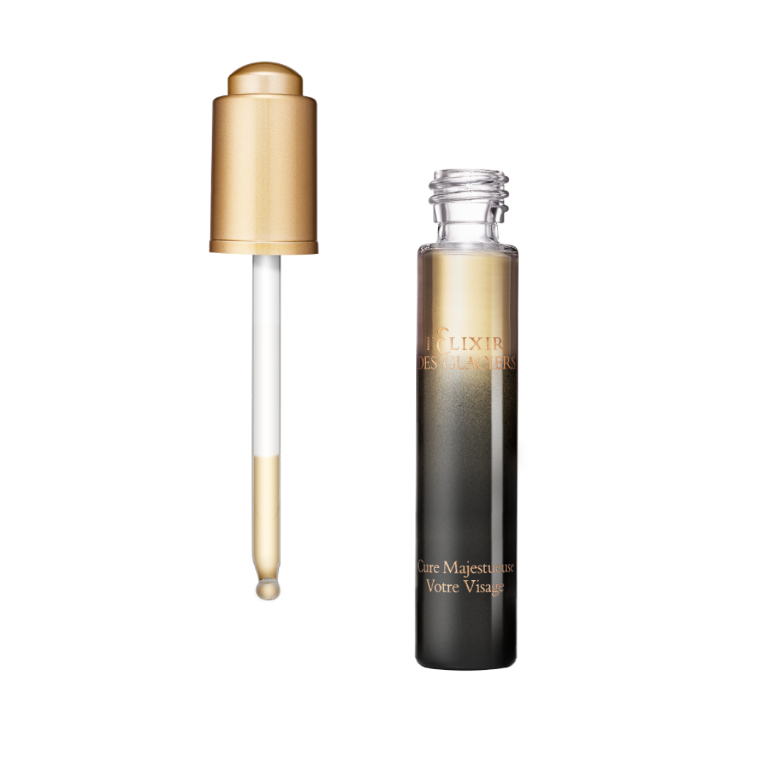 l'Elixir des Glaciers, đỉnh cao của trải nghiệm chăm sóc da sang trọng và hiệu quả trong ba bộ sưu tập độc đáo. Cảm giác tuyệt vời, chuyên môn chống lão hóa tinh vi và các thành phần quý hiếm; nước suối băng giá để nâng cơ, sữa ong chúa để nuôi dưỡng và DNA cá tầm vàng để tái khoáng hóa, vượt qua ranh giới của khoa học để đạt được những kết quả đặc biệt có thể nhìn thấy được.